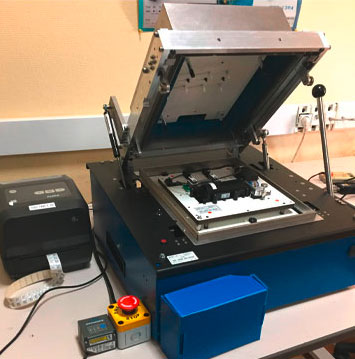 - Prüfstand zur GO/NO GO-Fertigungskontrolle. Das Produkt wird abgenommen, wenn die Ergebnisse den Spezifikationen entsprechen.