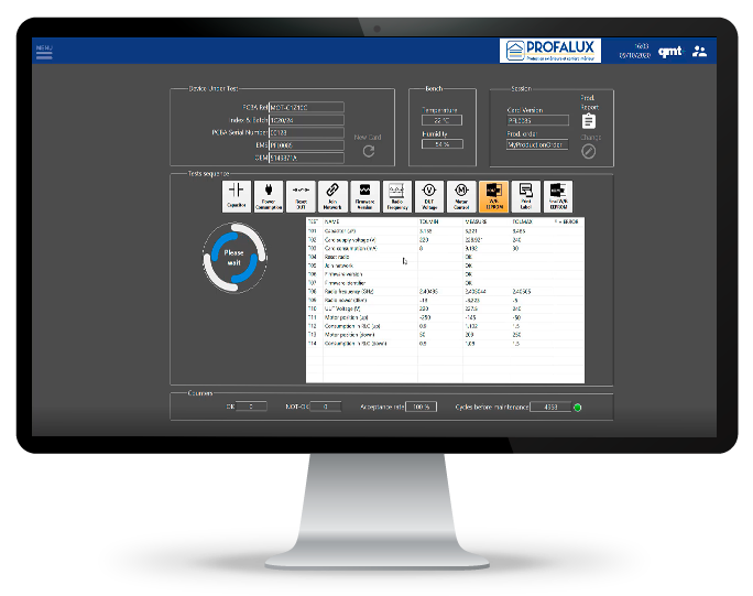 QMT -Prüfstände können halbautomatisch oder vollautomatisch sein. Erstere führen den Techniker durch die Leistungsmessungen, während letztere den Test automatisch und autonom durchführen. Die Software führt Testszenarien aus: Testtemperatur, Produktposition relativ zum Instrument usw.