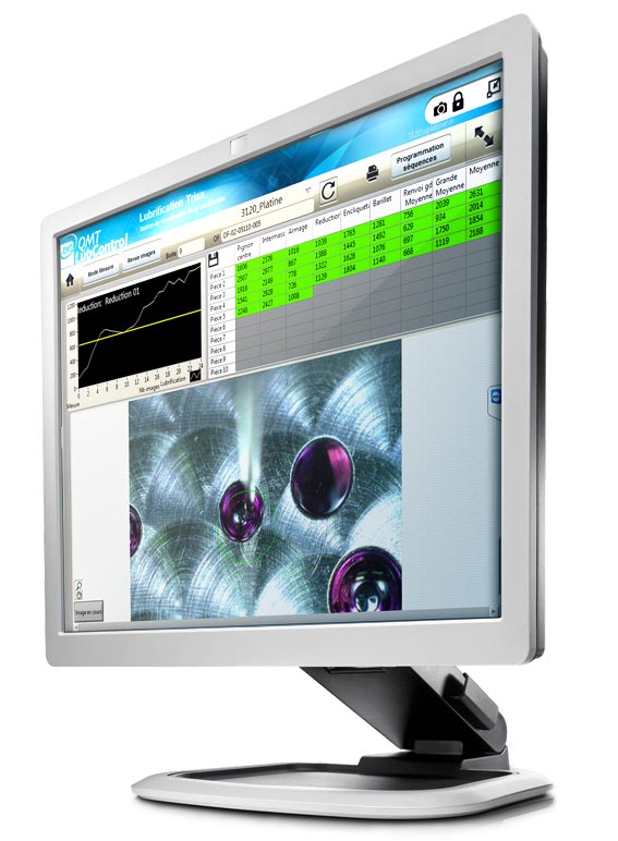 QMTLubControl ist eine Vision Station zur hochauflösenden Visualisierung und Steuerung des Schmierprozesses von SVM-Geräten. Optional werden die Aufzeichnung des Schmierfilms zur Verbesserung der Prozesssteuerung sowie die automatische Steuerung des guten Prozessfortschritts durch Bildverarbeitung angeboten. Diese Optionen ermöglichen eine Verbesserung der Steuerung, um eine gute Schmierung der Bewegungen zu gewährleisten.