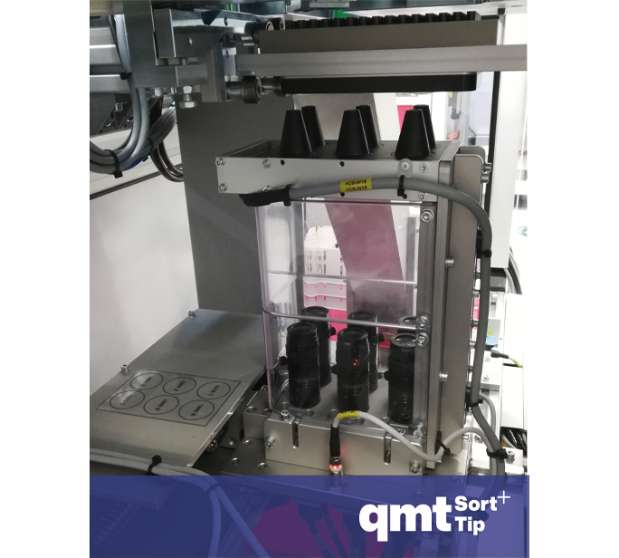 qmt hat die qmtsort-Spitzenstation für die 100%ige Qualitätskontrolle medizinischer Pipetten entwickelt und industrialisiert. Um die Präzision dieser Dosierung zu gewährleisten, müssen die Pipettenspitzen eine Geometrie sowie eine perfekte Oberflächenbeschaffenheit aufweisen.