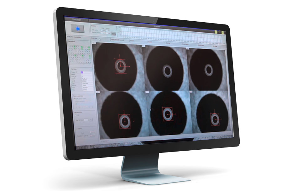 Das integrierte Computersystem kommuniziert mit der gesamten Maschine über optoisolierte 24-VDC-Digitalleitungen und einen OPC-Server für die Referenzauswahl und das Rückverfolgbarkeitsmanagement.
