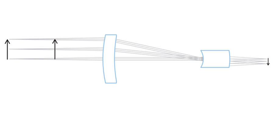 Logiciels QMTMesureContrairement aux systèmes optiques standards avec lesquels la taille de l’image change proportionnellement par rapport à la distance entre l’objet et l’objectif, avec les optiques télécentriques, la taille de l’objet reste théoriquement constante par rapport à la distance. Ceci est la raison principale de la popularité des systèmes télécentriques en vision industrielle. Un système optique télécentrique et ses faisceaux quasi-parallèles à l’axe optique :