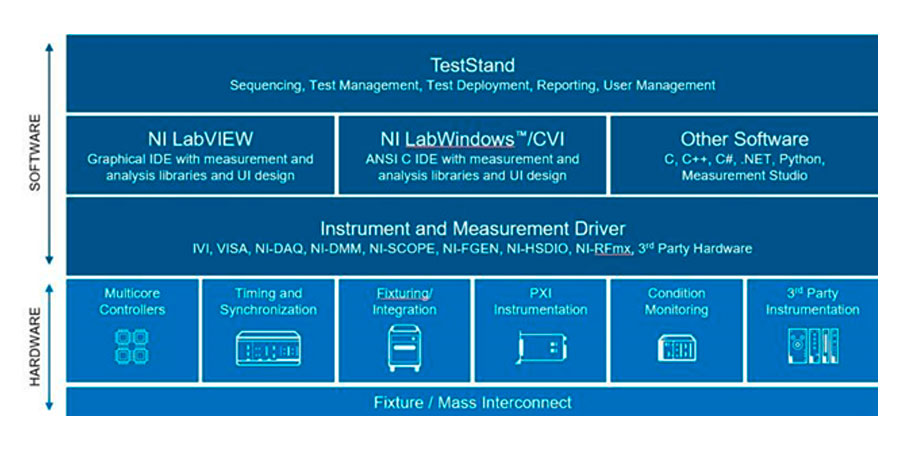 The TestStand environment is integrated with our qmt platform with the ability to more quickly implement features such as custom HMIs, application processes, signal acquisition and generation, communication and report generation in the desired format.
