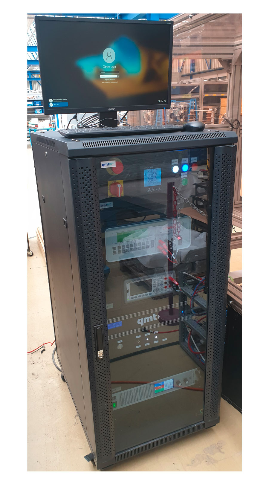 Maitrisant l’ensemble des métiers nécessaires à la réalisation d'un banc de tests (électronique, électrotechnique, instrumentation, informatique, logiciel, ...), qmt a conçu, développé, réalisé et mis en service ce banc de tests chez le client. qmt réalise également l'ensemble des prestations pour garantir la maintenance en conditions opérationnelles