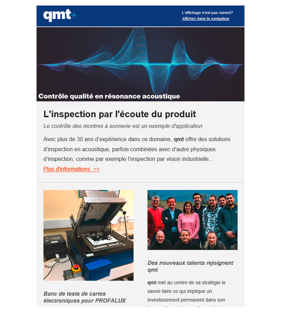 qmt primarily communicates its know-how, the technologies used and the innovations in the context of services, but also of products. We also communicate about news, the qmt team and the successes achieved