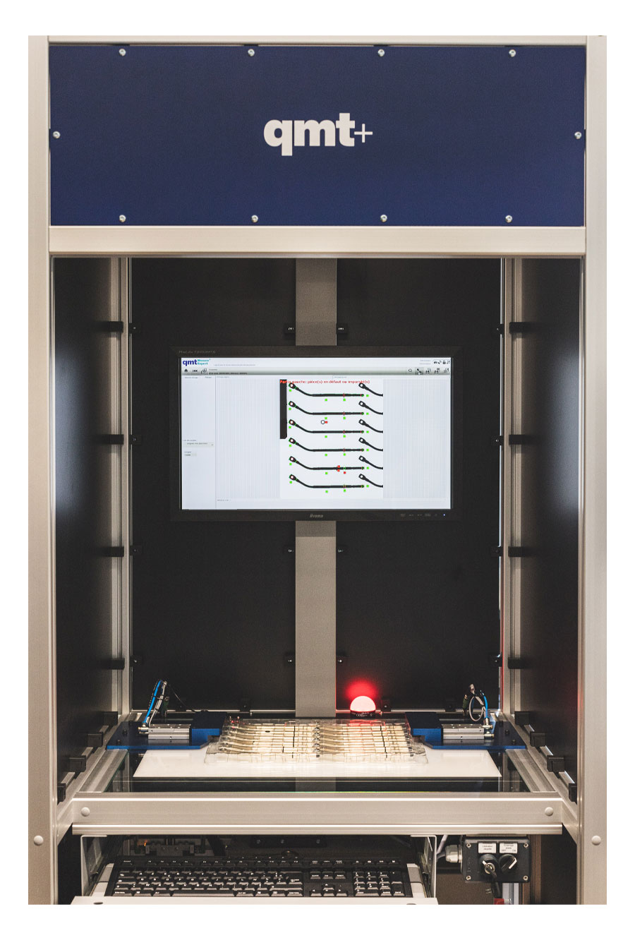 qmt a développé pour Baud Industries une machine permettant le contrôle de plusieurs références de connecteurs automobiles disposées dans une clayette. L’objectif de cet équipement est un contrôle rapide, fiable et constant d’un lot de pièces en simultané afin de détecter un ensemble de caractéristique prédéfinies.